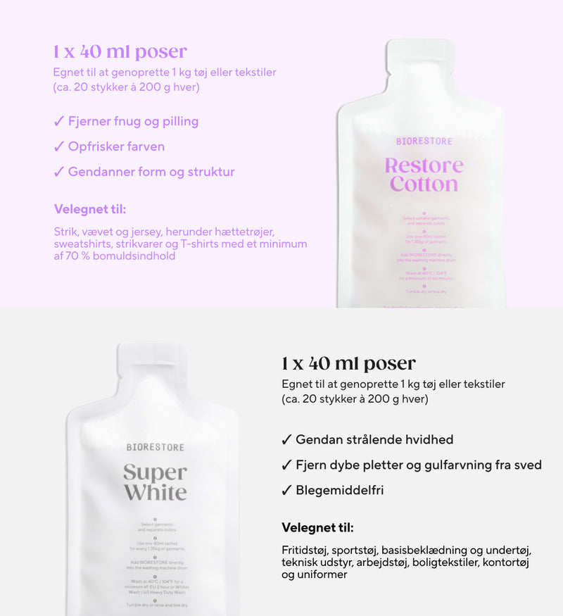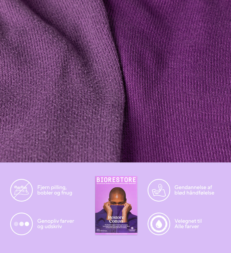 Restore Cotton: Restores soft hand-feel, revives colors, and eliminates pilling and lint. Perfect for fabrics with 70%+ cotton content, without any dye or mess.