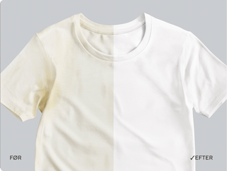 Efter: Gulfarvning fra svedpletter: Gulfarvning fra svedpletter, snavs og pletter fjernes, hvilket resulterer i lysere og mere levende hvidt tøj med et fornyet udseende og følelse.