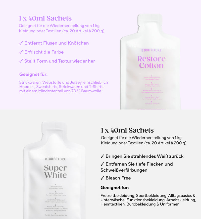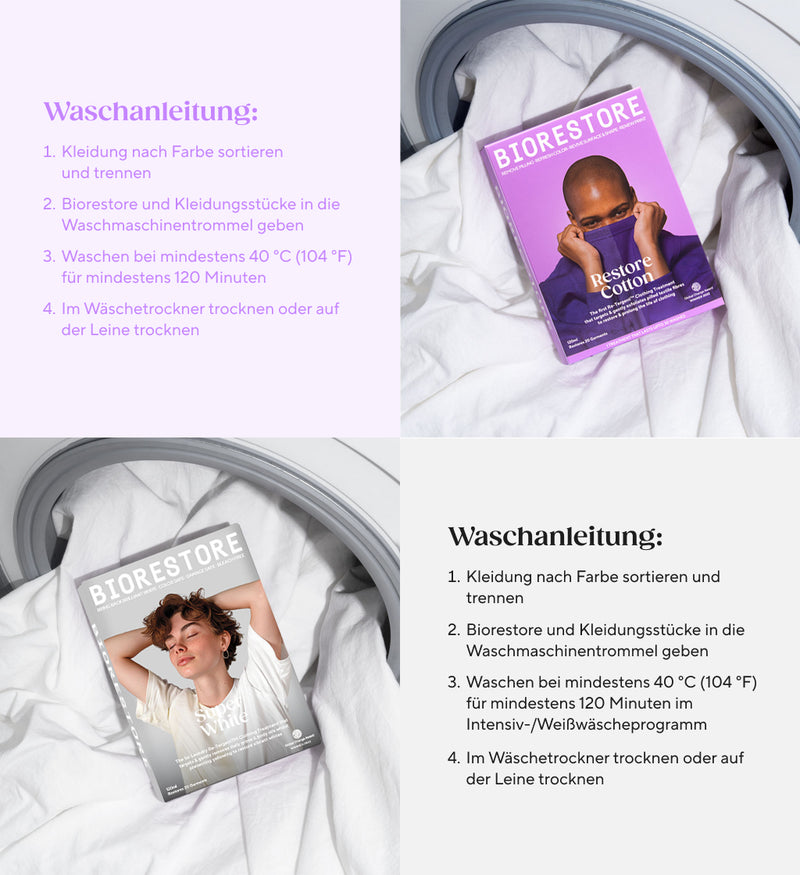 Just tried BIORESTORE for the first time to restore my home towels. They had a lot of pilling on them and color was also faded. After only one wash, all the fuzz and lint is gone, and they feel really smooth. I was about to throw these towels out but now they can be used for more time. Highly recommended!