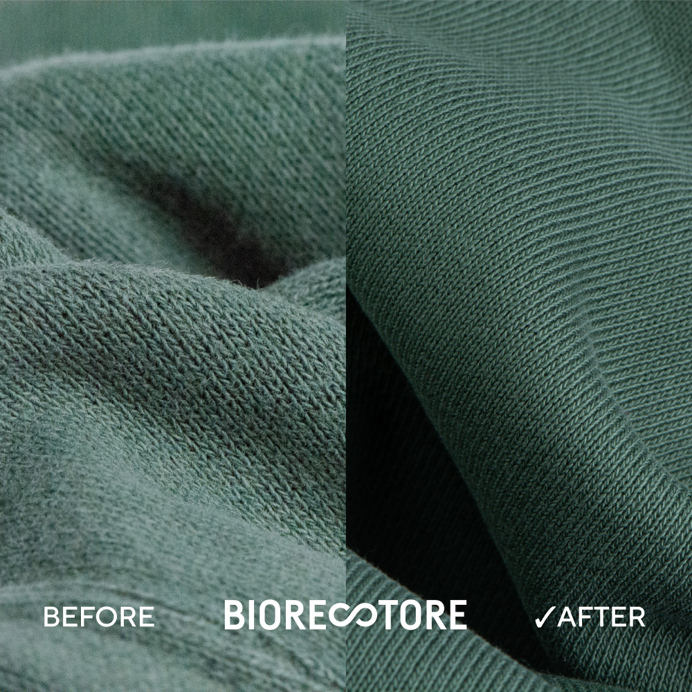 Le produit anti-peluches BIORESTORE cotton est l'une des meilleures solutions pour garder vos vêtements sans peluches plus longtemps. Il suffit de prendre vos vêtements en coton qui peluchent ou qui boulochent et de les mettre dans la machine à laver.