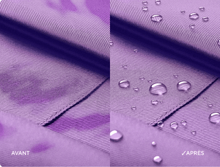 Après : Water Seal forme une couche barrière efficace, qui aide les gouttelettes d'eau à se former, à perler et à rouler sur la surface du tissu, empêchant ainsi l'eau de pénétrer dans vos vêtements, ce qui vous permet de rester au sec !