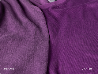 After: Colours are refreshed & vibrant, pilling & bobbles are removed renewing the clothing surface with a smoothed hand-feel & appearance.