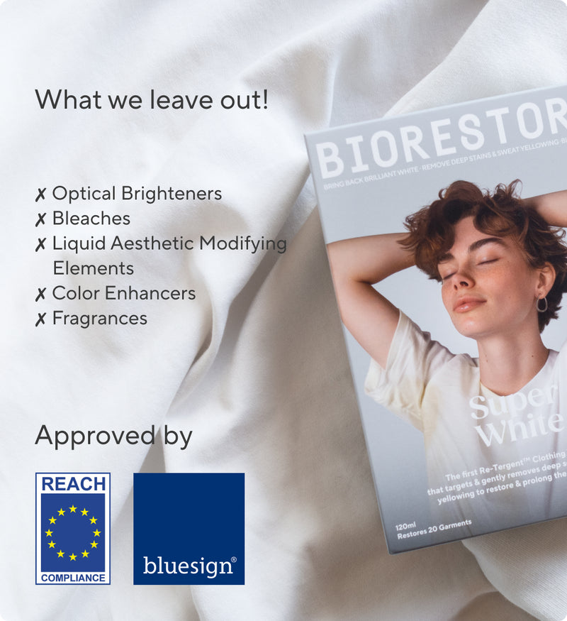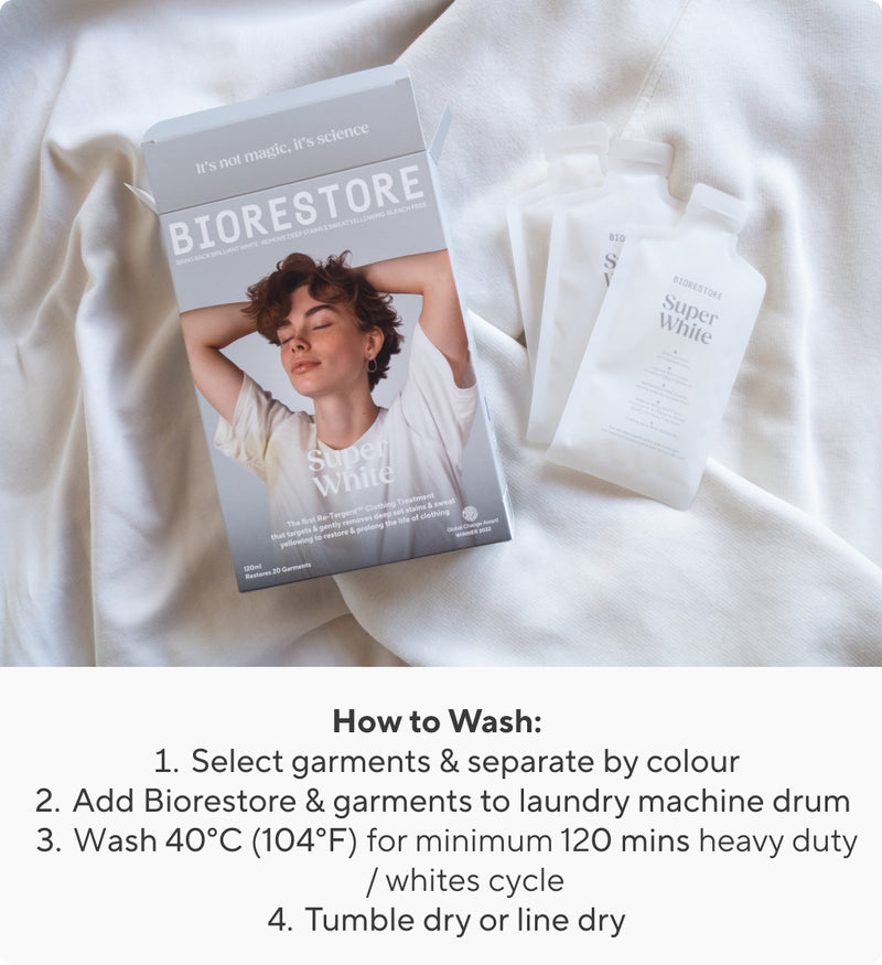 I was about to throw out my favourite white tees because of stubborn sweat stains on them, but only one wash with BIORESTORE Super Clean brought them back to life. The results are truly incredible and what I love the most about this product is that it’s bleach free